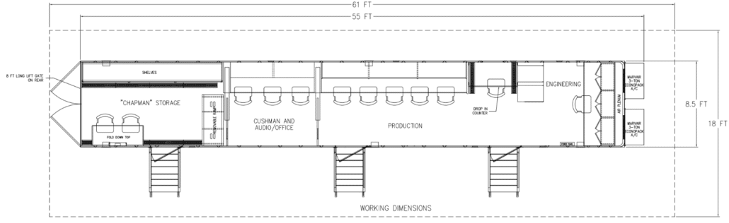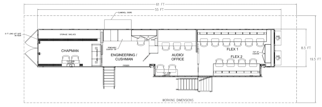 MU-B1 is a purpose-built 53-foot straight support trailer engineered to give broadcast crews room to work, organize, stage, patch, coordinate, and collaborate without being crammed into control trucks or makeshift production tents.